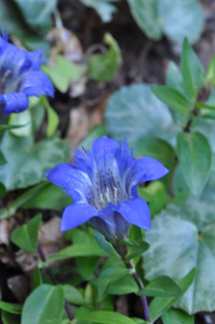 Gentiana occidentalis Bielsa Tunnel, Spain above and below. Another of the G. acaulis group all differing slightly. As you can see from the top photo, the flower buds just about to open, loving and living next to the limestone rock.